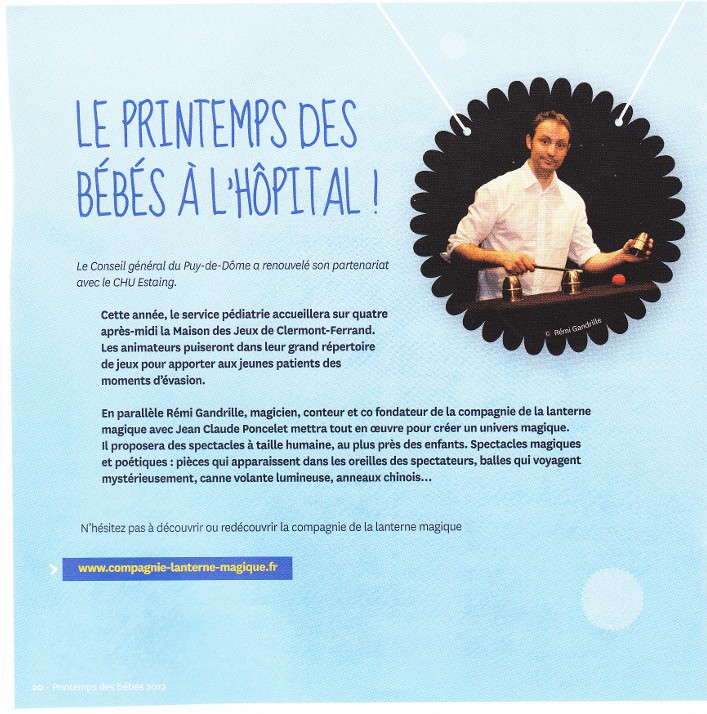 Dans le cadre de sa charte éthique, en lien avec l’association ACTE, la compagnie intervient de façon régulière depuis mars 2023 dans le service d’oncologie pédiatrique, à l'hôpital d'Estaing de Clermont-Ferrand.