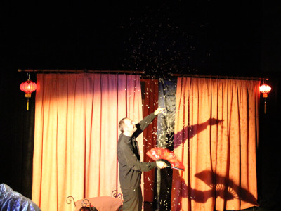 Un conte issu de la tradition chinoise est raconté par Rémi Gandrille. Ce conte est souligné par des tours de magie chinois authentiques comme les anneaux chinois ou le Yin et le Yang (ces balles mystérieuses qui voyagent à travers le corps des spectateurs eux-mêmes).