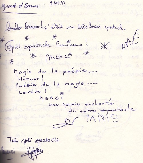 Extraits du livre d’or du spectacle Pêcheur d'Etoiles
